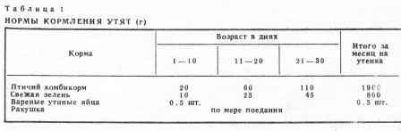 Подкармливают утят 30 дней с постепенным сокращением норм кормления в последние 10 дней.