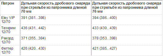 2. При использовании патронов с длиной гильзы 70 мм в патроннике длиной 76 мм дульная скорость может как увеличиваться, так и уменьшаться.